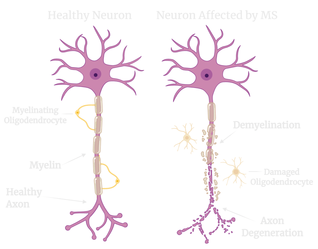 Multiple sclerosis (MS) is a chronic, inflammatory disease of the CNS that affects more than 900,000 Americans and causes physical, cognitive, and psychological disability. Although classically considered a demyelinating disease, neurodegeneration occurs nearly universally and correlates most closely with disability, likely caused by a combination of inflammatory injury and the effects of chronic demyelination. For most patients, early disease (called relapsing MS) is characterized by episodes of peripheral immune activation with invasion of the CNS causing focal inflammatory demyelination and axonal injury, while later disease (progressive MS) involves insidious progression of disability characterized by persistent innate immune activation, remyelination failure, and neurodegeneration